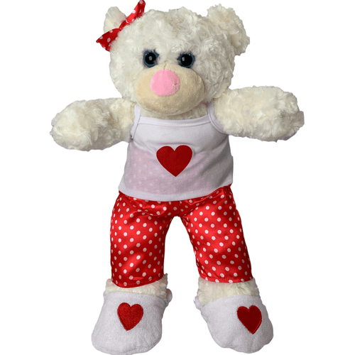 Fly with Abby the Angel on valentines day! This Abby the Angel teddy bear with its lovely three piece set love heart pj's and slipper's will bring you forever hugs and love. Personalise this 16" Teddy Bear with clothing and accessories to make the perfect unique gift.