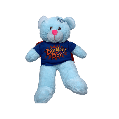 The birthday boy now can blow your candles together with this adorable Baby Blue Patches by your side! This adorable teddy bear is the perfect addition to any birthday party thanks to its fun birthday T-shirt with cape, Baby blue patches will bring you forever love and hugs! Give them the unforgettable gift of birthday bear hugs with this fun birthday teddy bear gift set.