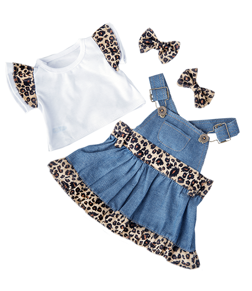 This outfit Denim Cheetah Dress Looks so cute on bears and makes them stand out even more.