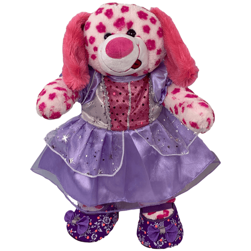 Dance the night away and leave your slipper behind. In this stunning furry friend dressed in this beautiful purple Cinderella princess with wings and with its own matching purple hot pink high heels. This Daisy the Dog Bear will bring you forever love and hugs! Personalise this 16" Teddy Bear with clothing and accessories to make the perfect unique gift.