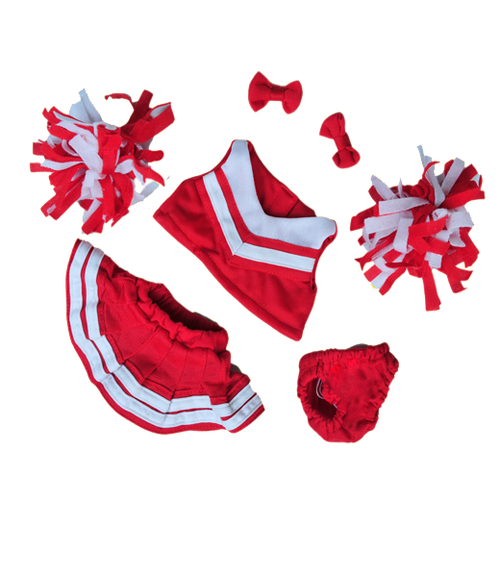 Let your fancy bear wear Red/White Cheerleader Uniform Outfit for fun and cheer leading.