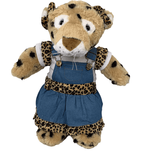 They'll be wild when you give them this adorable plush leopard gift set. This wild spots the leopard looks pretty as can be wearing her denim cheetah dress.